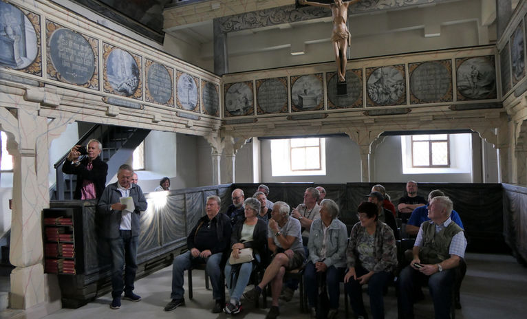 Nach dem Museum besuchen wir noch die Evangelische Kirche in Nentershausen mit ihrem gotischen Mauerwerk und der barocken Innengestaltung.